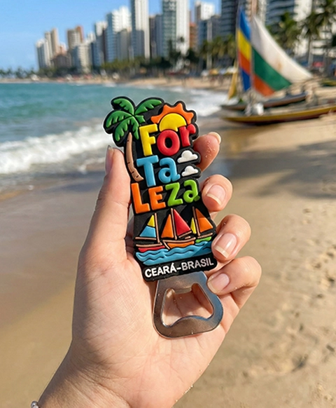 Combinando uma base metálica robusta com o acabamento emborrachado de alta definição, conseguimos destacar cada detalhe do design — desde as cores vibrantes das paisagens de Fortaleza até as texturas em relevo que proporcionam uma pegada firme e confortável. É o presente ideal que une a força do metal com a beleza e o toque único do acabamento 3D que só a maior fábrica do Brasil pode oferecer.